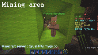 I will purchase Pickle from a merchant on the way to the mining site. At the mining site, mining is done by defeating the creeper or exchanging it. A block indicated as <BREAK> is crushed with Pickle and gold ore, silver ore , lapis lazuli can be obtained. You can drop gun powder from creeper and exchange nutrition drinks with merchandise from merchants.